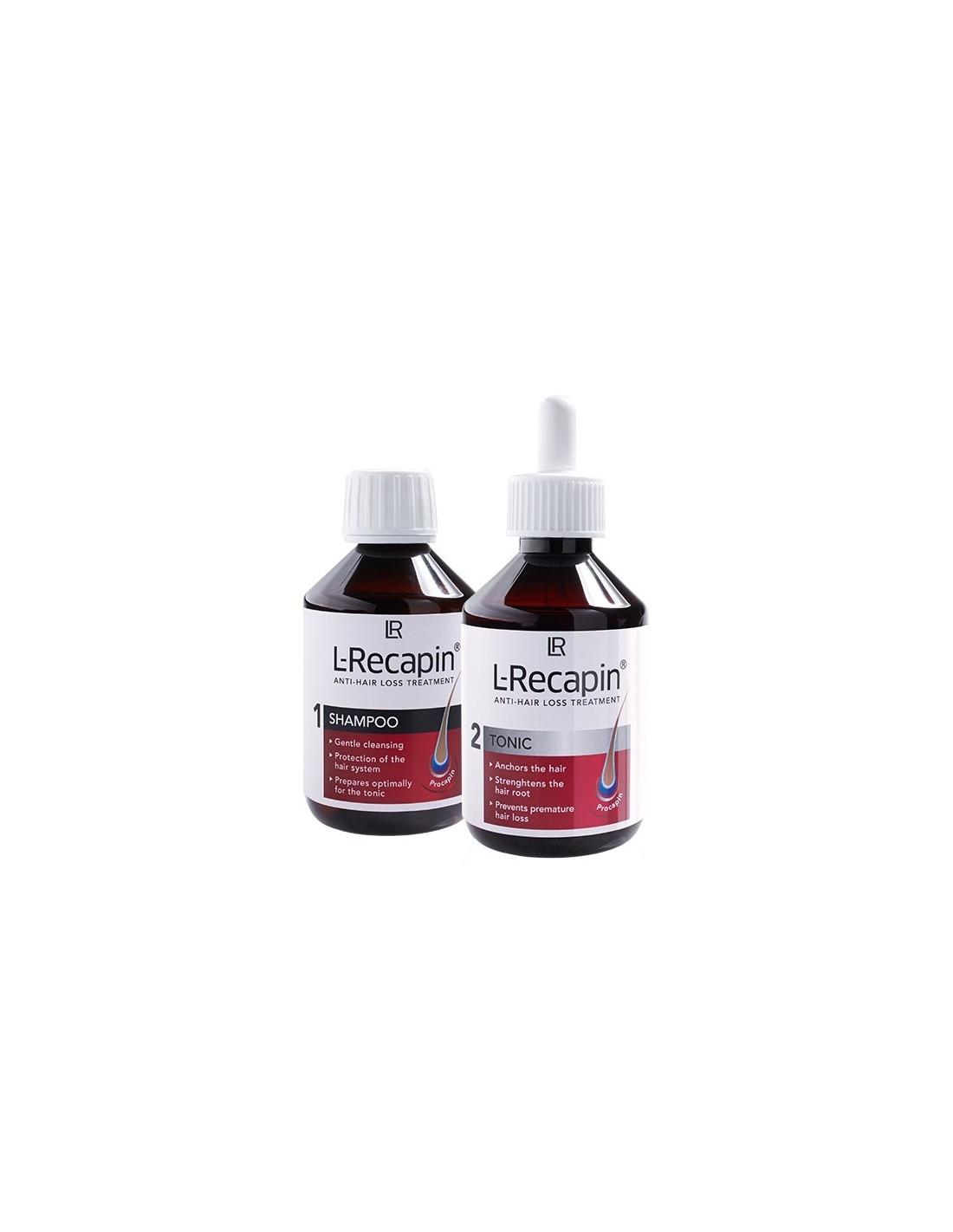 ¡Set 1+1 L-Recapin! Sólo la aplicación prolongada y regular de los dos productos permite alcanzar resultados óptimos. Los mejores efectos se obtienen con la combinación del champú y del tónico.