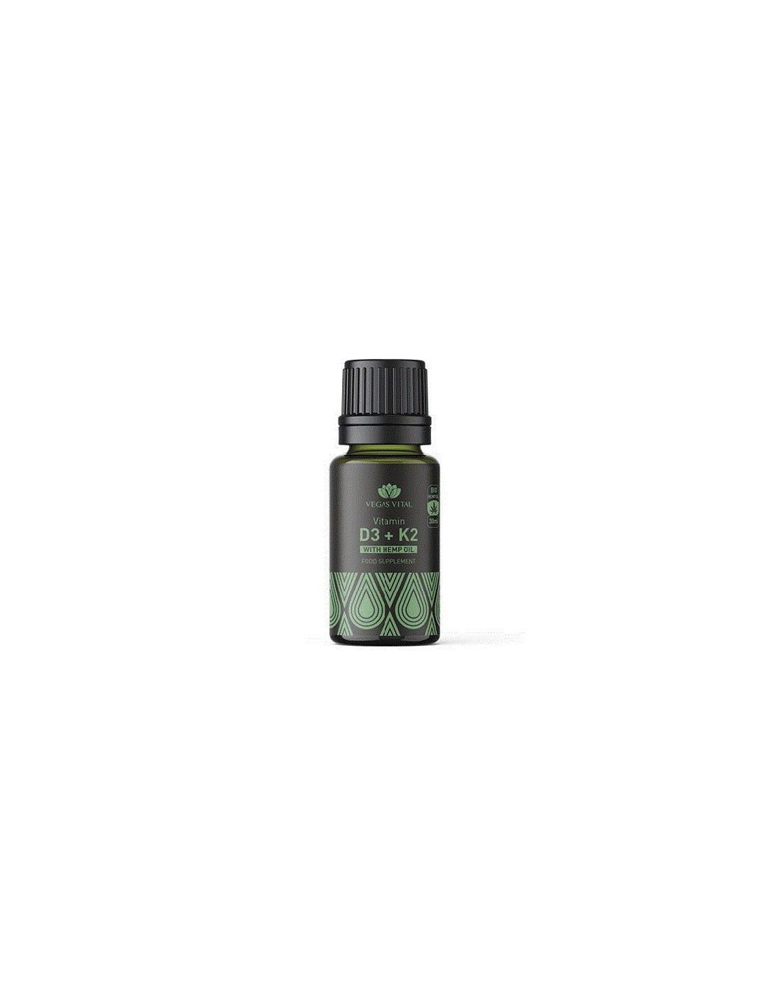 Complemento alimenticio a base de cáñamo y vitaminas. El aceite de cáñamo con vitamina D3 y K2 es la combinación perfecta para apoyar la salud ósea y contribuir al funcionamiento normal de la función muscular y del sistema cardiovascular.