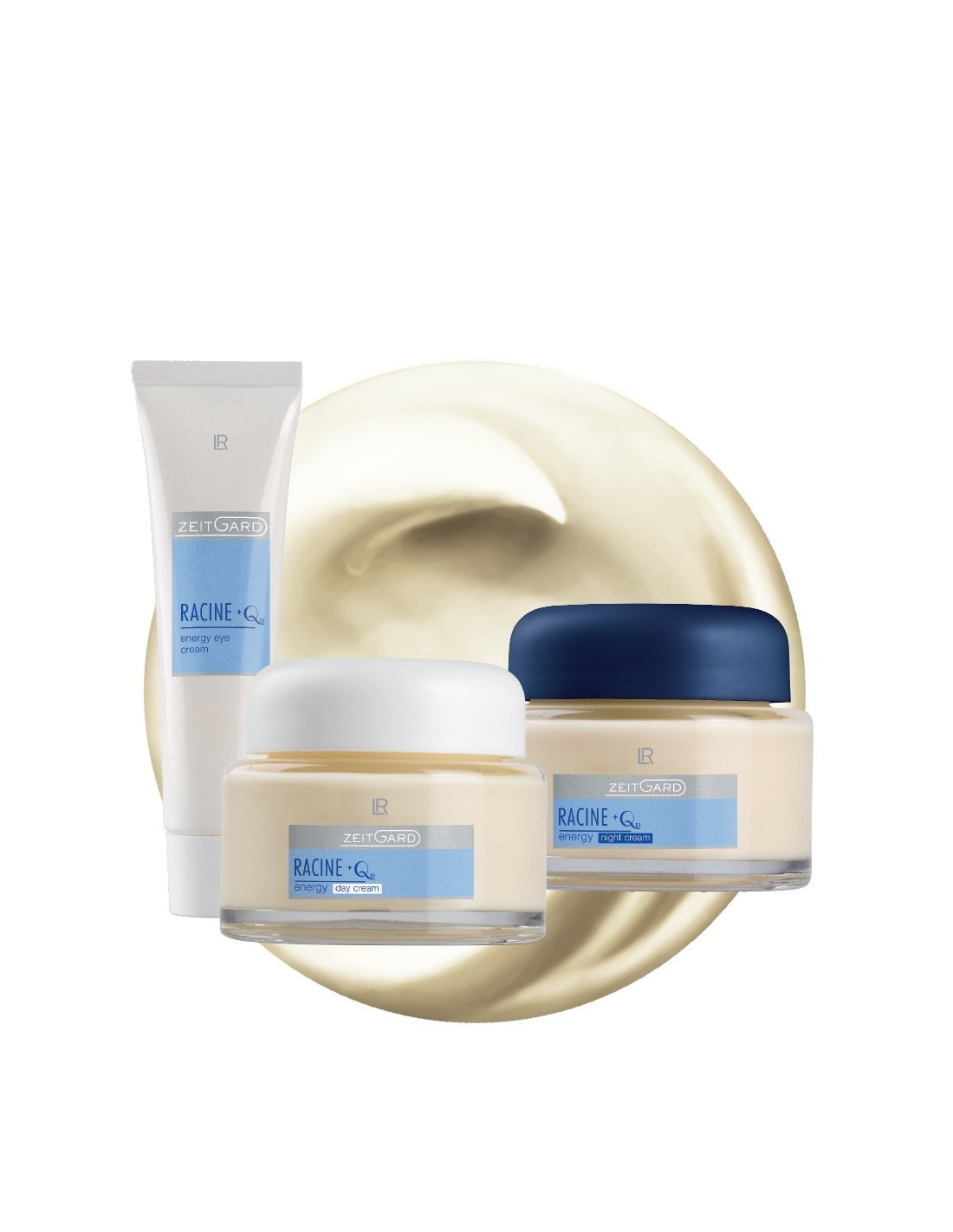 Contenido del Set: Racine Daily Care Crema de día Q10 50 ml (LRHB028500), Racine Daily Care Crema de noche Q10 50 ml (LRHB028501), Racine Daily Care Crema de ojos Q10 15 ml (LRHB028502)